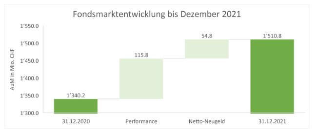 Das Wachstum belief sich somit auf 12.7 %. Der Anstieg war durch eine starke Neugeldentwicklung gestützt, die auch im vierten Quartal 2021 angehalten hat.