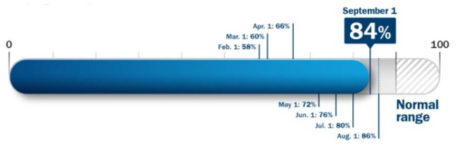 Der „Return to Normal Index“ von Columbia Threadneedle: Er sank auf 84 Prozent Anfang September, nachdem er Anfang August bei 86 Prozent notiert hatte. Ein Wert von 100 Prozent markiert das Normalniveau vor der Corona-Pandemie.