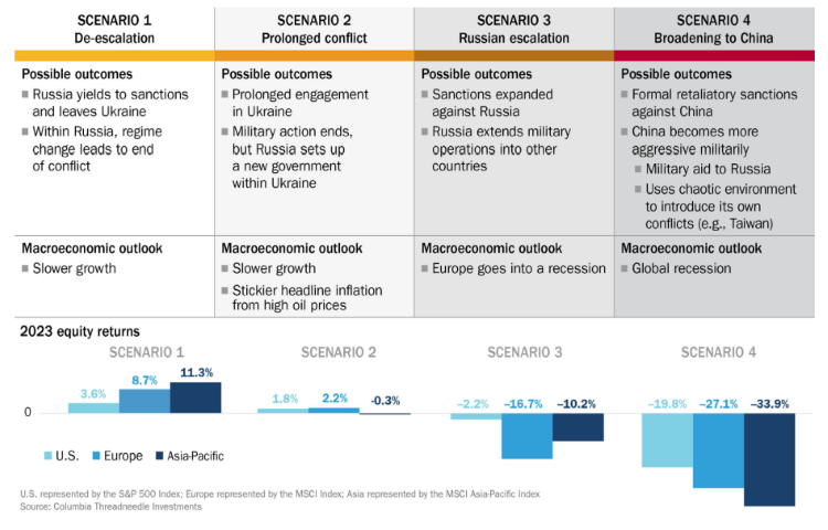 Columbia Threadneedle zufolge sind auch mit fortdauerndem Krieg in der Ukraine 2023 wieder positive Renditen an den Aktienmärkten denkbar