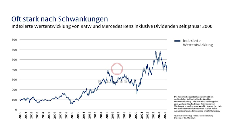 Insofern können die Unternehmen – trotz ihrer relativ starken Konjunkturabhängigkeit – einen wertvollen Beitrag im Portfoliokontext leisten. Entscheidend ist dabei stets die Gesamtarchitektur des Portfolios. Ziel muss es sein, unterschiedliche Geschäftsmodelle, Ertragsprofile und Zyklen zu kombinieren, um die Widerstandsfähigkeit gegenüber verschiedenen Marktszenarien zu erhöhen. Daher ist eine ausgewogene Mischung verschiedener Geschäftsmodelle von zentraler Bedeutung. BMW und Mercedes-Benz können für uns aus gutem Grund dazugehören.