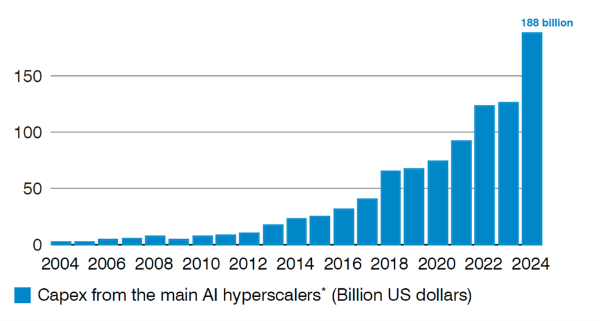 Abbildung 2: Investitionsausgaben der wichtigsten KI-Hyperscaler (vom 31. Dezember 2004 bis 31. Dezember 2024)