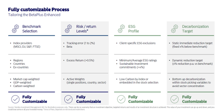 «Der Gewinn des ersten Kooperationspartners in der Schweiz, ist für mich in erster Linie ein Testament für die hohe Qualität und Robustheit unserer Enhanced-Indexing-Lösungen», meint Cristian Pappone weiter. Ausschlaggebend für die Zusammenarbeit mit der Kantonalbank sei der konsistente und langjährige Leistungsausweis des Ansatzes von NAM gewesen.Im Rahmen dieses Kooperationspartnermodells erhalten beispielsweise CIOs und Portfoliomanager Zugang zu verschiedenen Bausteinen, welche flexibel eingesetzt werden können, sowie auch zu einer weiteren, exklusiven Anteilsklasse (I3-Klasse). Darüber hinaus bietet NAM massgeschneiderte Lösungen rund um die BetaPlus-Produktlinie an. Kunden können beispielsweise den Indexprovider, die abgedeckten Regionen und Länder oder den konkreten Ansatz – beispielsweise BIP-gewichtet oder marktgewichtet – frei wählen. Wahlmöglichkeiten bestehen auch mit Blick auf den Tracking Error – zwischen 1 und 2 Prozent – und besondere ESG-Wünsche. «Unsere Kernkompetenz ist und bleibt das Thema Klima und Dekarbonisierung. In diesem Bereich sind wir in Europa führend. Entsprechend können wir BetaPlus sehr flexibel an den Dekarbonisierungszielen unserer Kunden ausrichten», erklärt Pappone.