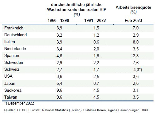Zum Schluss einige Anmerkung zu den Vertretern des Degrowth-Ansatzes. Es ist mehr oder weniger eine Banalität, dass der Verbrauch von Ressourcen zurückgeht, wenn die Wirtschaft, gemessen am realen Bruttoinlandsprodukt, schrumpft. Dann würde auch die Umwelt weniger belastet. Dieser Vorschlag wird von den meisten Volkswirten, fast allen Unter-nehmen und der breiten Bevölkerung als Hirngespinst abgetan: Er führe zu einem Anstieg der Arbeitslosigkeit und einem Rückgang des allgemeinen Wohlstands. Wie das Beispiel Japan zeigt, muss das nicht so sein: In den dreißig Jahren bis 1990 war das reale BIP dort im Durchschnitt um 6,4% gestiegen, in den 31 Jahren seitdem nur um 0,7 Prozent. Wenn das nicht Degrowth ist! Von sozialen Unruhen wurde bisher noch nicht berichtet, und die Arbeitslosenquote beträgt nur 2,6 Prozent. Es ist also machbar.